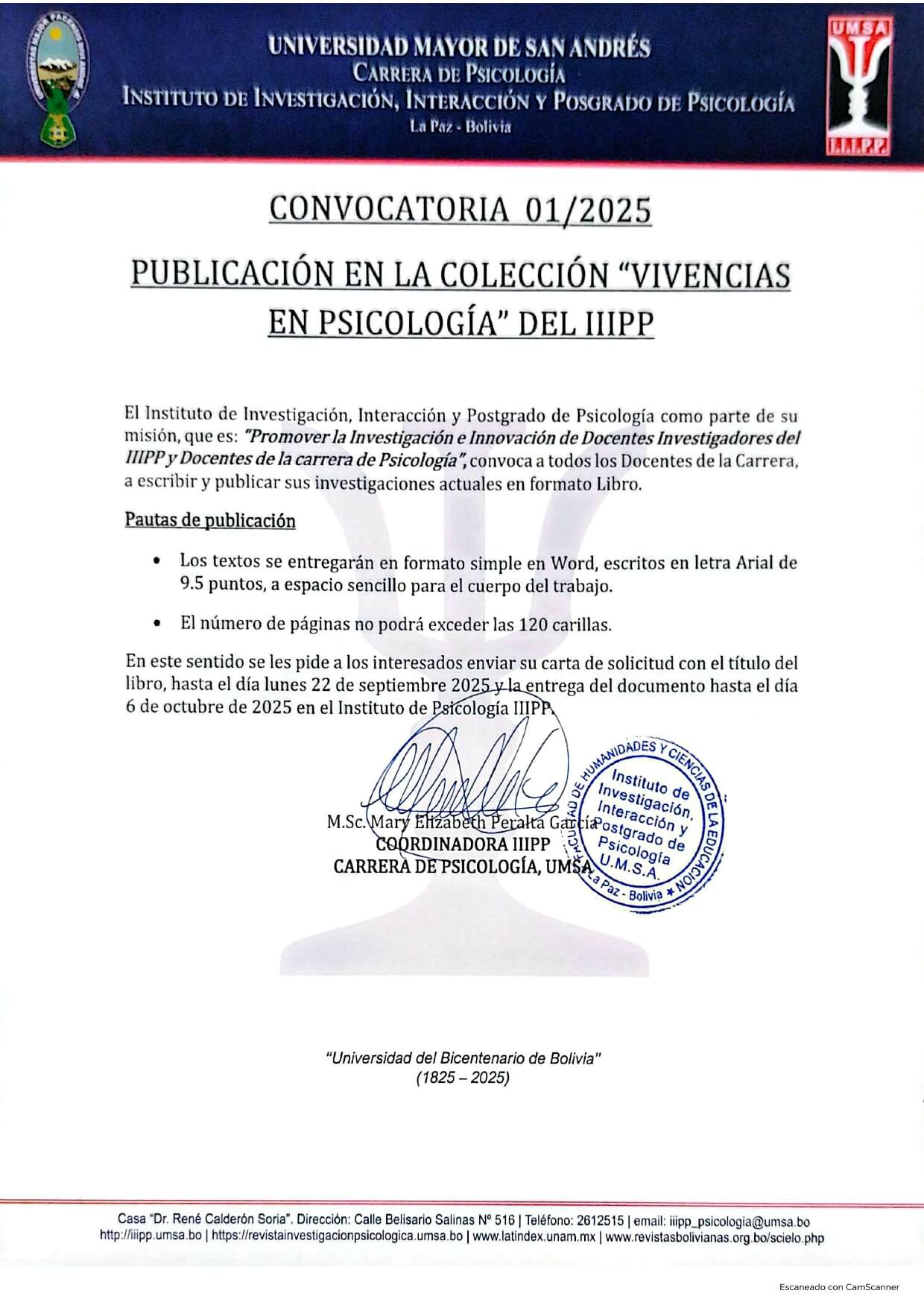 El instituto de Investigacion, Integracion y Postgrado de Psicologia lanza la convocatoria para la publicacion en la coleccion "Vivencias en Psicologia"